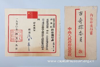 被任命的古奇踪先生是我国著名青年民主人士,在北大求学时曾积极参与领导国统区的爱国学生运动,解放后历任北京市学生联合会主席、北京市人民代表、北京市人民政府监察委员会委员等职。他毕生从事体育教育工作,是北京体育学校、北京体育师范学院的创始人之一,离休后还创立了中国教育学会体育研究会,为我国的体教事业做出了巨大的贡献。王风、古为勉作为古奇踪先生的妻女,于2021年将此件任命通知书捐赠给首都博物馆。