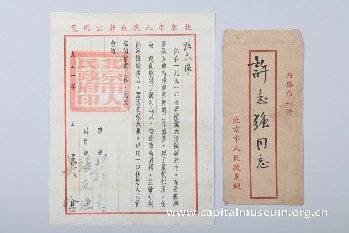 藏品的正面是一封北京市人民政府写给市民许志强的表彰函,写于1951年5月。在函中,市政府感谢许志强在1951年首都北京春季清洁大扫除运动中充分表现团结互助精神与高度的工作热情,起到了模范作用,使这一运动收获了胜利成果。函的末尾是北京市市长彭真和副市长张友渔、吴晗的签名。捐赠人许政明为许志强之子。