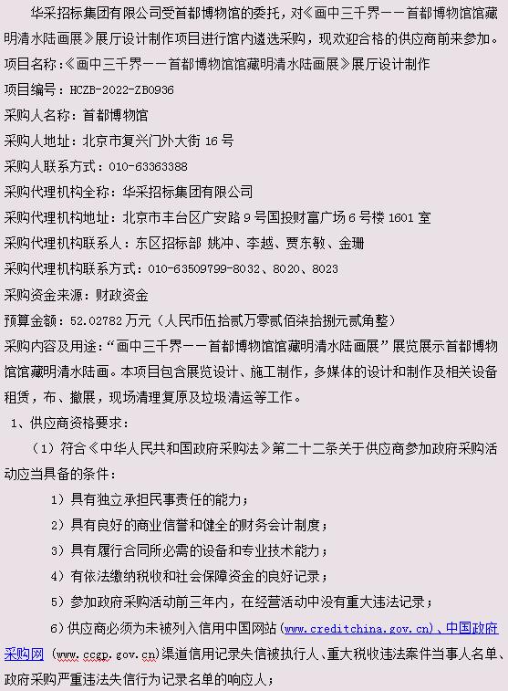 《画中三千界——首都博物馆馆藏明清水陆画展》展厅设计制作馆内遴选公告