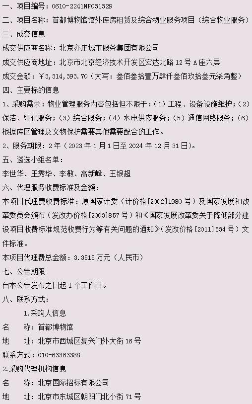 首都博物馆馆外库房租赁及综合物业服务项目(综合物业服务)