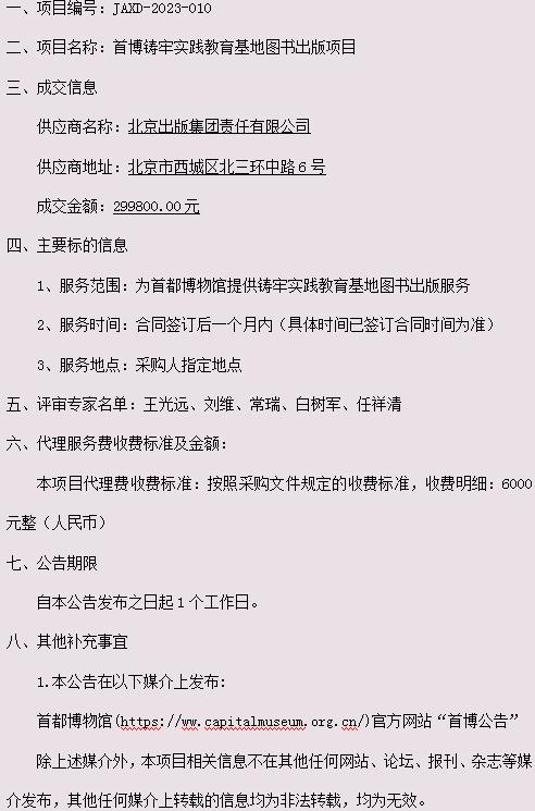 首博铸牢实践教育基地图书出版项目成交结果公告