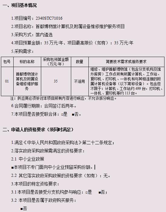 首都博物馆计算机及附属设备维修维护服务项目