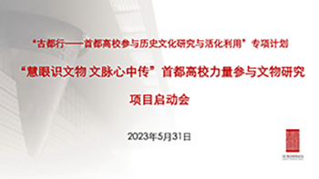 为推动落实市委宣传部、市委教育工委部署的“‘京’彩文化 青春绽放”行动计划,促进首都高校人才培养,推动全国文化中心建设,首都博物馆于2023年5月31日通过线上方式联合北京大学、清华大学、中国人民大学、首都师范大学、北京印刷学院、北京联合大学等六所高校召开“慧眼识文物 文脉心中传”首都高校力量参与文物研究项目启动会。