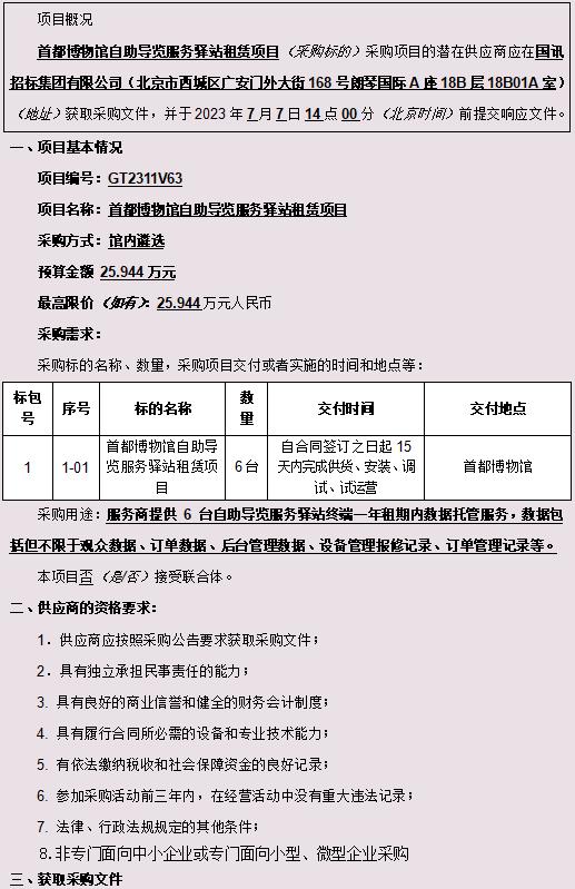 首都博物馆自助导览服务驿站租赁项目采购公告