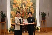 2023年7月12日上午,在首都博物馆贵宾厅举行捐赠仪式,两届奥运会金牌得主、中国跆拳道名将吴静钰女士将今年6月在首届奥林匹克电子竞技周跆拳道项目“虚拟跆拳道(Virtual Taekwondo)”的比拼中获得的第三名奖杯捐赠给首都博物馆,这也是中国代表团在奥林匹克电竞历史上获得的第一枚奖杯。首都博物馆副馆长谭晓玲女士向吴静钰女士颁发捐赠证书,代表首都博物馆祝贺奥运健儿再创佳绩,对捐赠奖杯致以诚挚谢意。