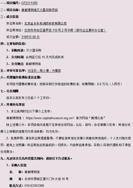 首都博物馆灭火器采购项目成交结果公告