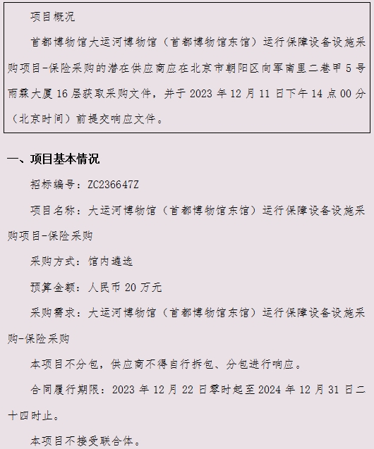 大运河博物馆(首都博物馆东馆)运行保障设备设施采购项目-保险采购