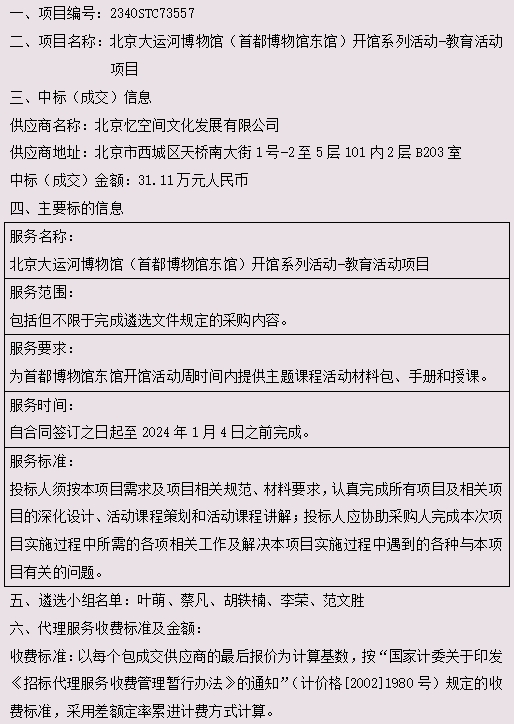 北京大运河博物馆(首都博物馆东馆)开馆系列活动-教育活动项目成交公告