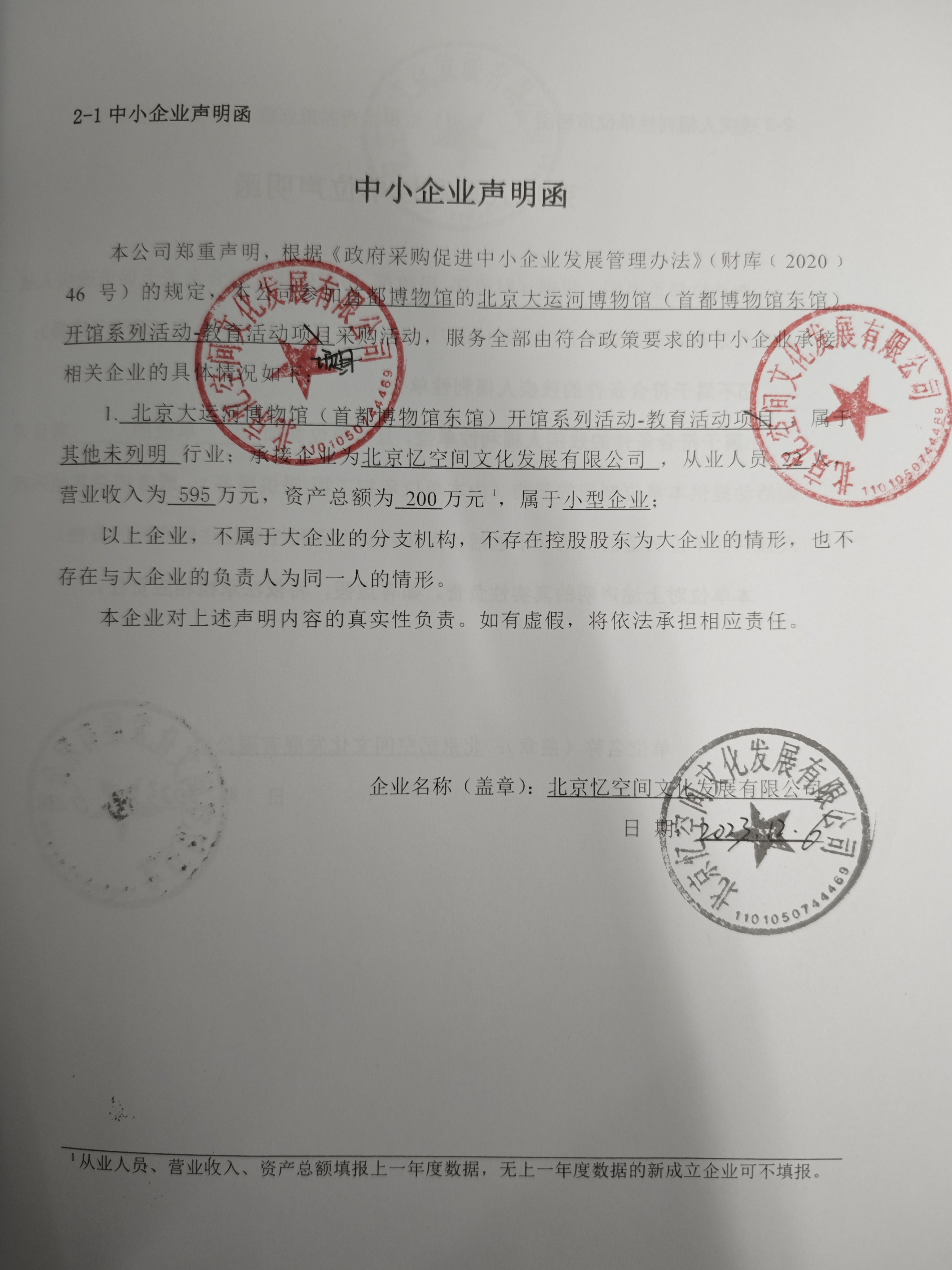 中小企业声明函