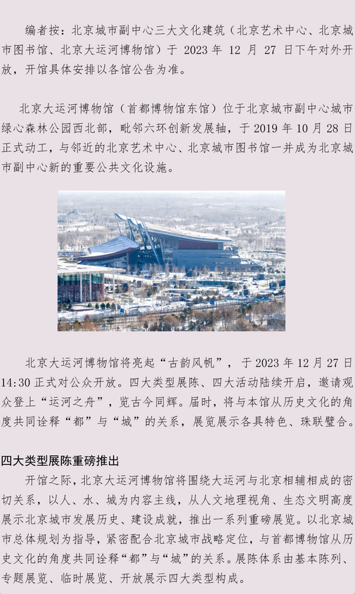 北京大运河博物馆(首都博物馆东馆)即将开馆