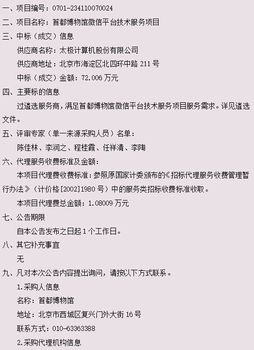 首都博物馆微信平台技术服务项目