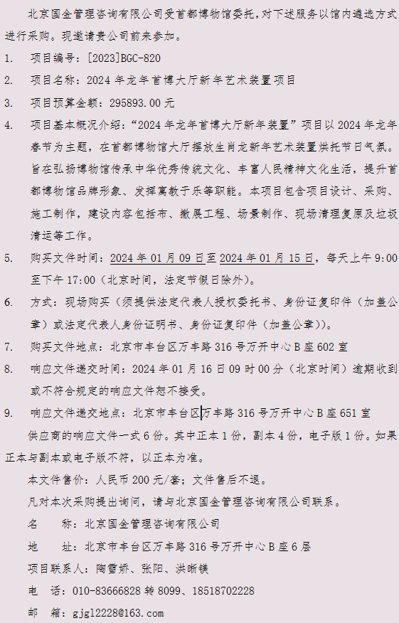 2024年龙年首博大厅新年艺术装置项目遴选公告
