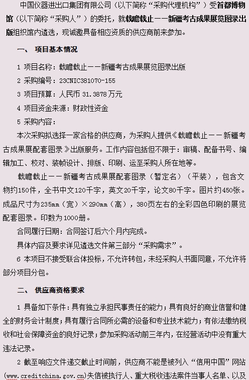 载瞻载止——新疆考古成果展览图录出版公开遴选公告