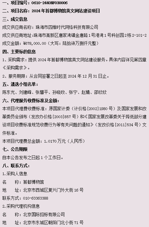 2024年首都博物馆英文网站建设项目成交公告