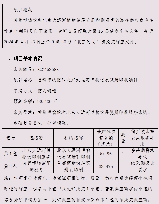 需求-第1包-首都博物馆和北京大运河博物馆展览册印刷项目