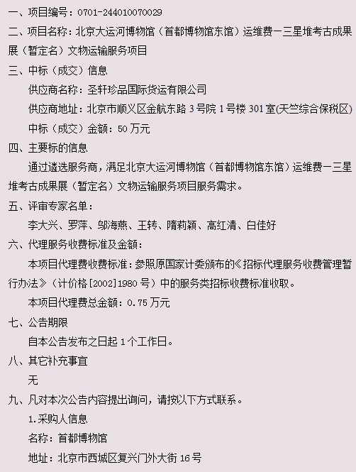 北京大运河博物馆(首都博物馆东馆)运维费—三星堆考古成果展(暂定名)文物运输服务项目