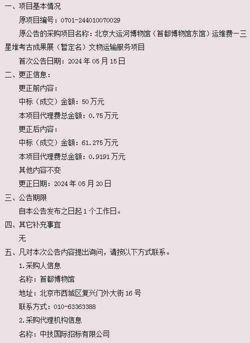 北京大运河博物馆(首都博物馆东馆)运维费—三星堆考古成果展(暂定名)文物运输服务项目