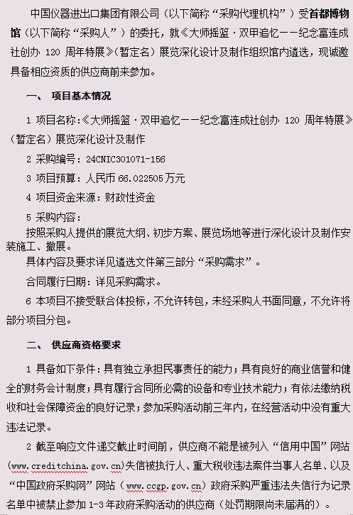 《大师摇篮·双甲追忆——纪念富连成社创办 120 周年特展》(暂定名)展览深化设计及制作公开遴选公告