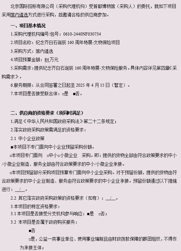 纪念齐白石诞辰160周年特展-文物保险项目(二次)遴选公告