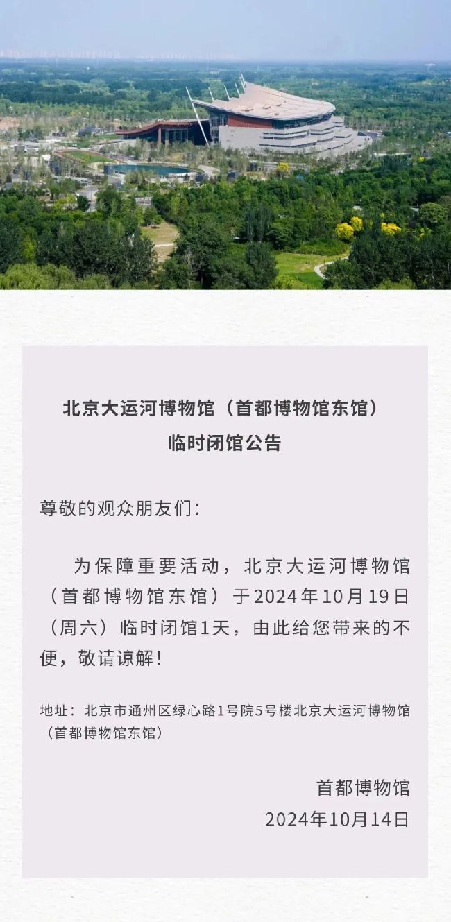 北京大运河博物馆(首都博物馆东馆)临时闭馆公告