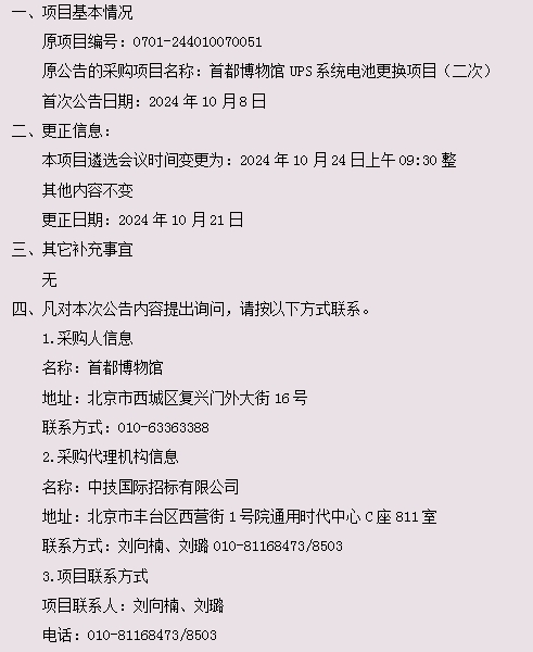 首都博物馆UPS系统电池更换项目(二次)