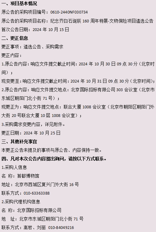 纪念齐白石诞辰160周年特展-文物保险项目更正公告