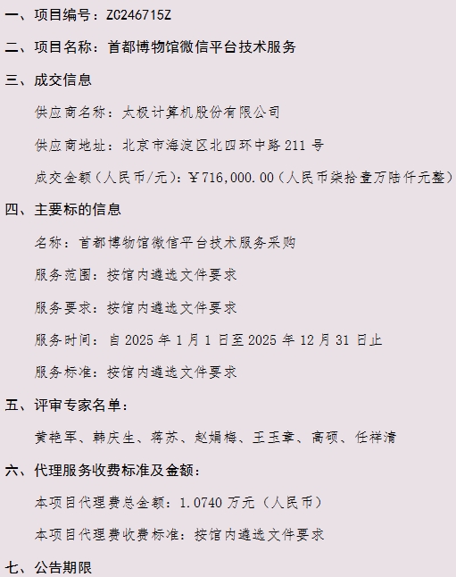 首都博物馆首都博物馆微信平台技术服务项目成交结果公告