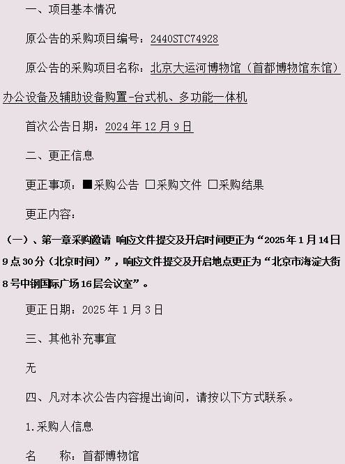 北京大运河博物馆(首都博物馆东馆)办公设备及辅助设备购置-台式机、多功能一体机