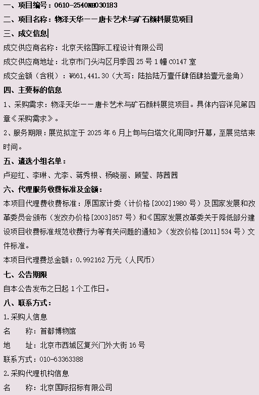 物泽天华——唐卡艺术与矿石颜料展览项目成交公告