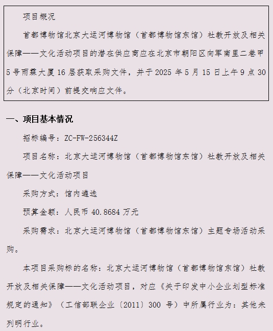 首都博物馆北京大运河博物馆(首都博物馆东馆)社教开放及相关保障——文化活动项目