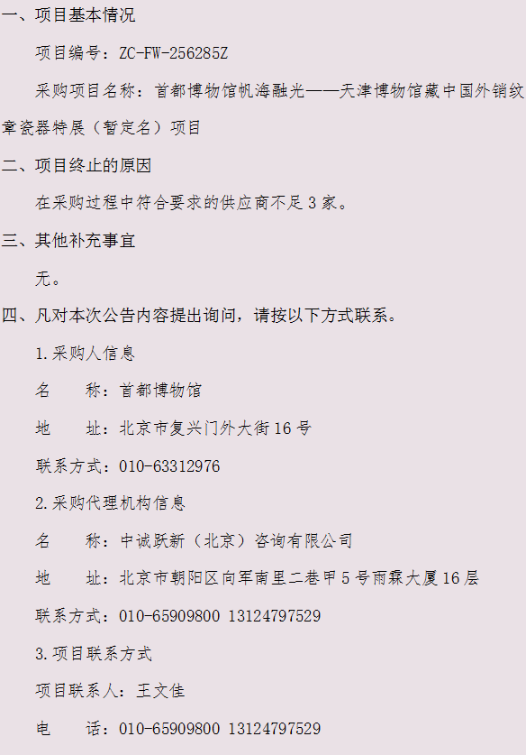 首都博物馆帆海融光——天津博物馆藏中国外销纹章瓷器特展(暂定名)项目终止公告