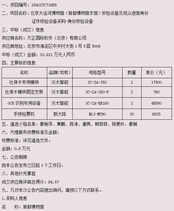 北京大运河博物馆(首都博物馆东馆)安检设备及观众进馆身份证件核验设备采购-身份核验设备