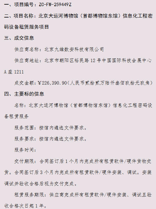 北京大运河博物馆(首都博物馆东馆)信息化工程密码设备租赁服务项目