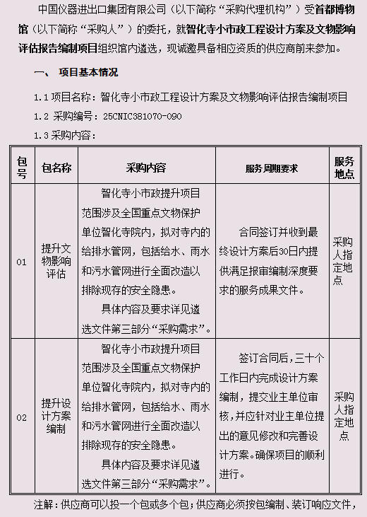 智化寺小市政工程设计方案及文物影响评估报告编制项目公开遴选公告
