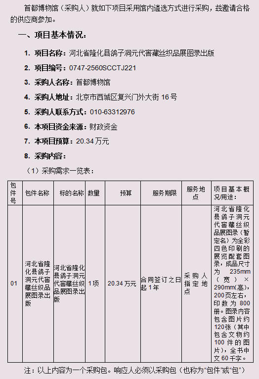 河北省隆化县鸽子洞元代窖藏丝织品展图录出版采购公告