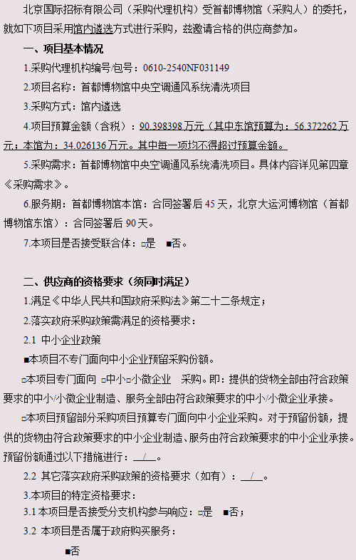 首都博物馆中央空调通风系统清洗项目遴选公告