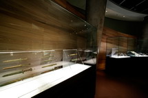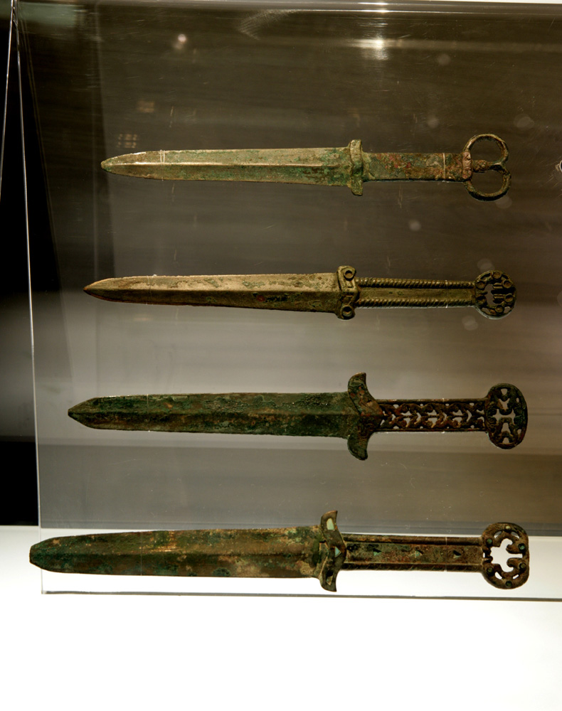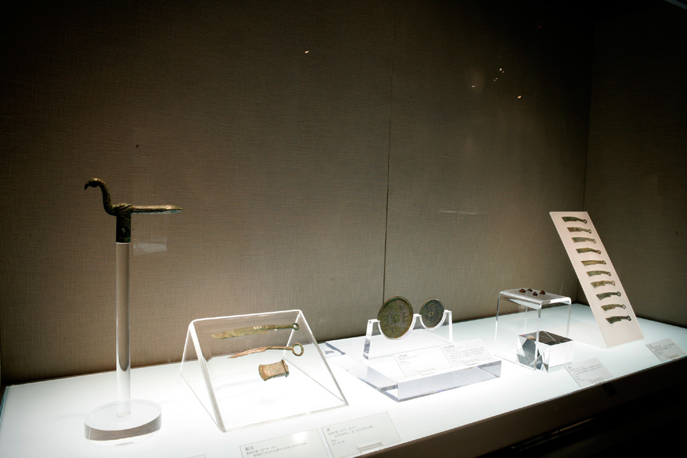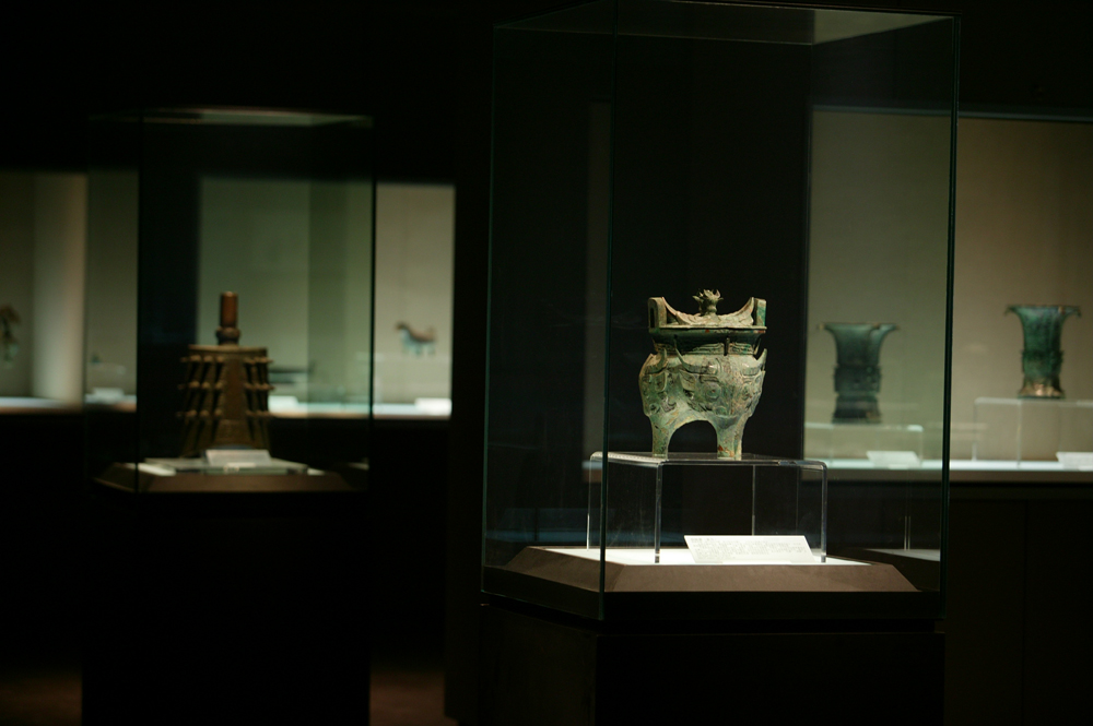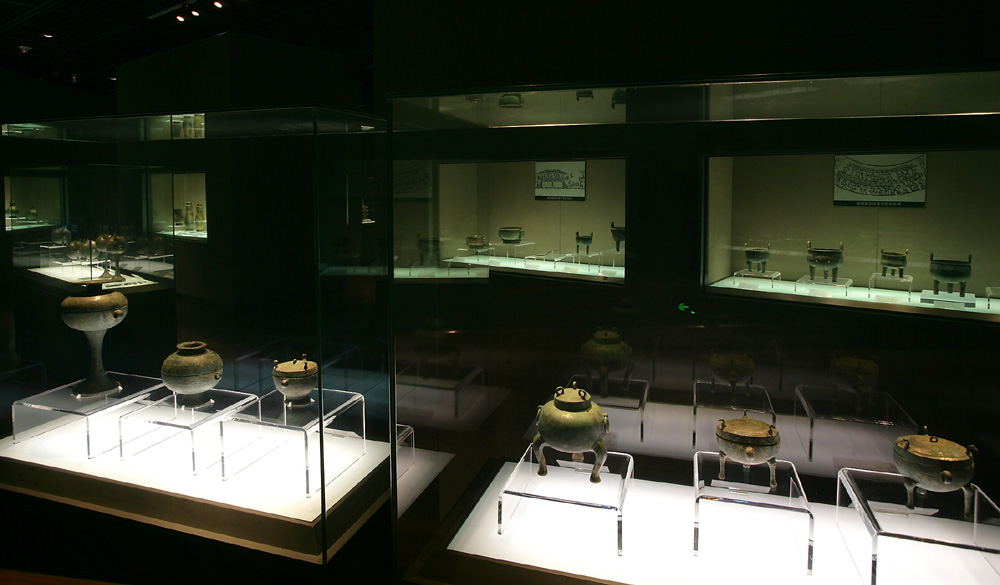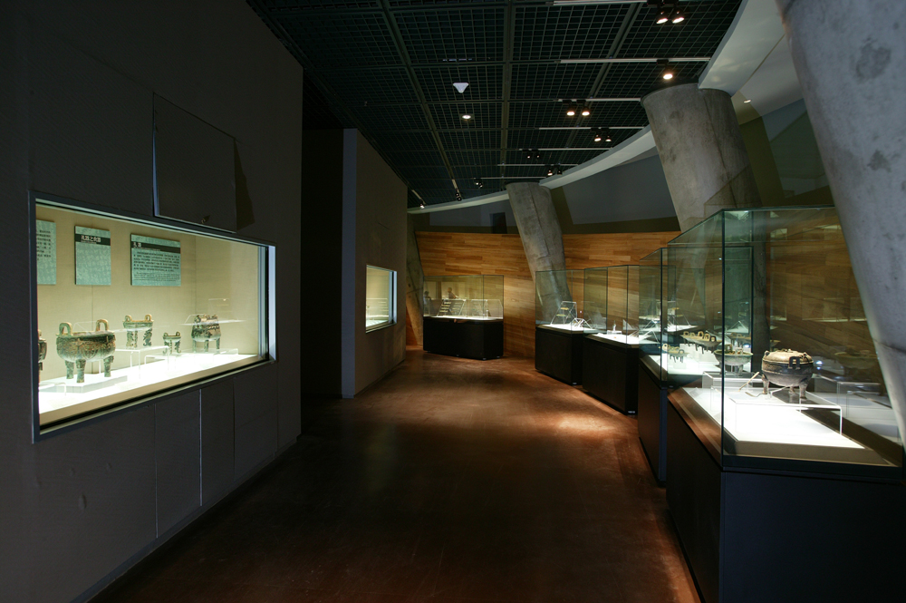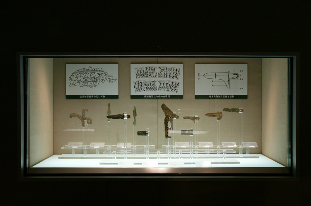 为突出燕文化的特色,在展厅中心设计了一座显示出夯土层理的方城,象征着房山琉璃河燕国西周都城。城墙内、外壁与展厅四壁的展柜形成了三层同心展线。西周展品位于展厅中心,东周展品则位于展厅四壁的环形展柜,两周展品都依照兵器、礼乐器、杂器的顺序对应摆放,实现了两种青铜文化的对比。