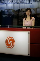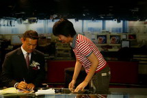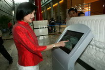 凤凰卫视主持人吴小莉点击首博导览触摸屏