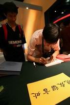 凤凰卫视部分主持人与大家见面(二) 凤凰卫视主持人胡一虎(左)为观众签名