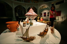 这些都是6月23至29日,在首都博物馆举行的阿拉伯艺术展呈现给观众的。此次展览将用大量的阿拉伯生活实物及外交官拍摄的图片展现阿拉伯世界的自然景观、灿烂的文化历史遗存、街景、集市,真实地反映勤劳质朴的阿拉伯人民生活的各个方面。艺术展主要分为四个部分,A区“文化长廊”展示22个阿拉伯国家的文化风情,B区“阿拉伯传统艺术展”展示250-300件传统工艺品,C区“阿拉伯当代造型艺术展”展示200-240件造型艺术品,D区“中国外交官眼中的阿拉伯世界摄影展”展出200件摄影作品。整个展览突出阿拉伯世界的独特文化特征与她的民族艺术的整体性,着力打造一个生动、整体的阿拉伯世界文化图影。在展览的互动区,观众还可以亲自体验阿拉伯手工艺制作的乐趣,增进对遥远国度的认识。