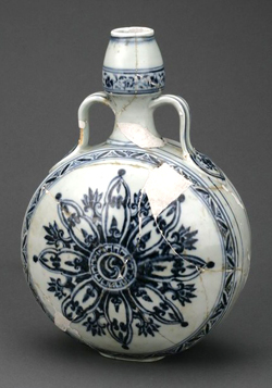 明永乐时,曾派遣舰队七下西洋。随着中外文化交流与贸易往来,中国的陶瓷文化影响了伊斯兰世界,而同时,伊斯兰文化也影响了景德镇陶瓷。景德镇陶工把传统白瓷制作成伊斯兰金属器皿的造型,并在瓷器上绘制伊斯兰花卉,这些充满异国情趣的瓷器展示了永乐官窑吸收优秀的外来文化而创造出的崭新陶瓷艺术。