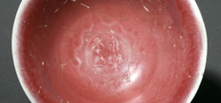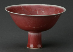 由于红釉在烧成过程中的特殊原因,盏心的“永乐年制”篆文印款特别清晰,是迄今为止永乐高足杯中纪年铭文最清晰的一件,弥足珍贵。