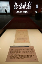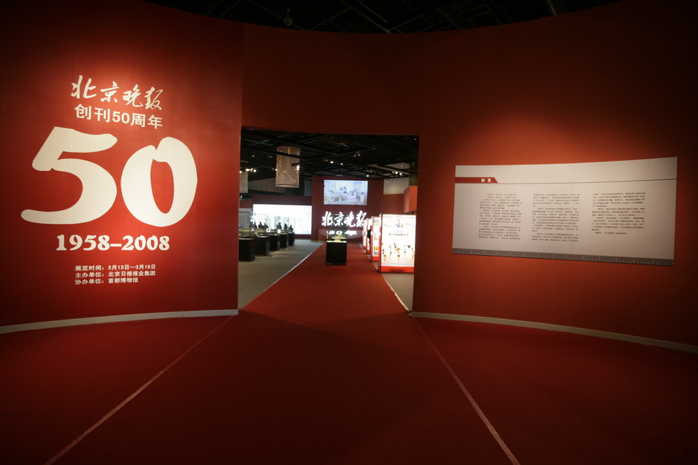 “《北京晚报》创刊50周年展”展品丰富而又珍贵,展览分为“奠定基业”(1958年-1966年);“发展壮大”(1980年-1990年);“开拓创新”(1991年-1999年);“走向辉煌”(2000年-2008年)四个部分。