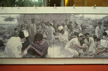 “坚忍卓绝——2008·五月记忆”大型油画展的巨幅画作由靳尚谊、詹建俊、陈丹青、章仁缘等国内80多位油画名家耗时数月集体创作完成,场面恢宏、气势磅礴。