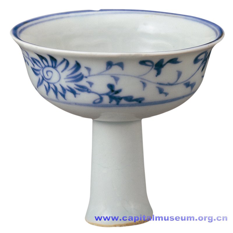 青花缠枝菊花纹高足杯