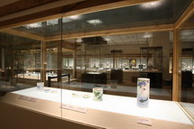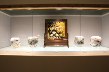 三、“弘扬·光大”。现代工艺美术瓷在继承前人的同时,更有创新。为推动醴陵瓷的创新与发展,很多国内外美术及陶瓷业的专家被引进到醴陵进行创作。本部分将通过对国宴专属瓷、中南海用瓷、人民大会堂用瓷的展示,呈现醴陵釉下五彩瓷在今天成熟而高雅的艺术形态。