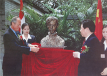 迈杰希·彼得总理和文化部长孙家正在北京鲁迅博物馆为裴多菲像揭幕