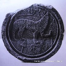 虎纹瓦当 西汉 北京大学赛克勒考古与艺术博物馆藏 建筑构件。泥质灰陶。圆形,瓦身残断。主体花纹为一立虎,回身张口怒吼虎尾上卷,虎身斑斓条纹清晰可见。虎下方有一鹿和长青树。 |
