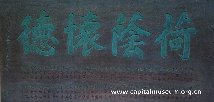 荷荫怀德 1943年 北京文博交流馆藏 说明:这块匾中出现了当时最富盛名的“四小名旦”——张君秋、李丗芳、毛世来、宋德珠。张君秋师从各家,唱做俱佳,其中王瑶卿对其影响最大;李丗芳,嗓音洪亮甜润,扮相雍容华贵,故有“小梅兰芳”之称;毛世来,有“筱翠花”之号,擅长演花旦戏;宋德珠,博采众长,形成自身“美、媚、脆、锐”的独特风格。 |