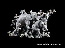 世代相传 | 肩针 作品的概念是天伦之乐,小象在河边玩耍,母亲从后照料,亲切动人,表达出中国人传统母慈子孝的观念,传承世代。 作品的底部是以钻石原石铺成一道河边,水花四溅,闪烁悦目,衬托出小象嬉水之乐。此外,钻石原石未经打磨,保留原有奇特的色彩,象征着蕴酿中的文明散发独特的神采。 不琢不成器,在这件作品中表达得淋漓尽致。整件作品以钛金雕刻而成,加上镂空技术,工艺非凡。钛金是一种特殊的金属,它与人体具有高度的亲和性,且只有黄金的五分之一,用以制作珠宝,大大推展作品的创作空间。然而,钛金属极其坚硬,故一般只可以倒模的方式制作,但由于作品的体积大,故作者选择了难度极高的方式进行创作──雕刻,雕刻钛金,必须以钻石刀来进行,一笔一刀,将一块平平无奇的钛金雕成一座栩栩如生的大象雕塑。 |